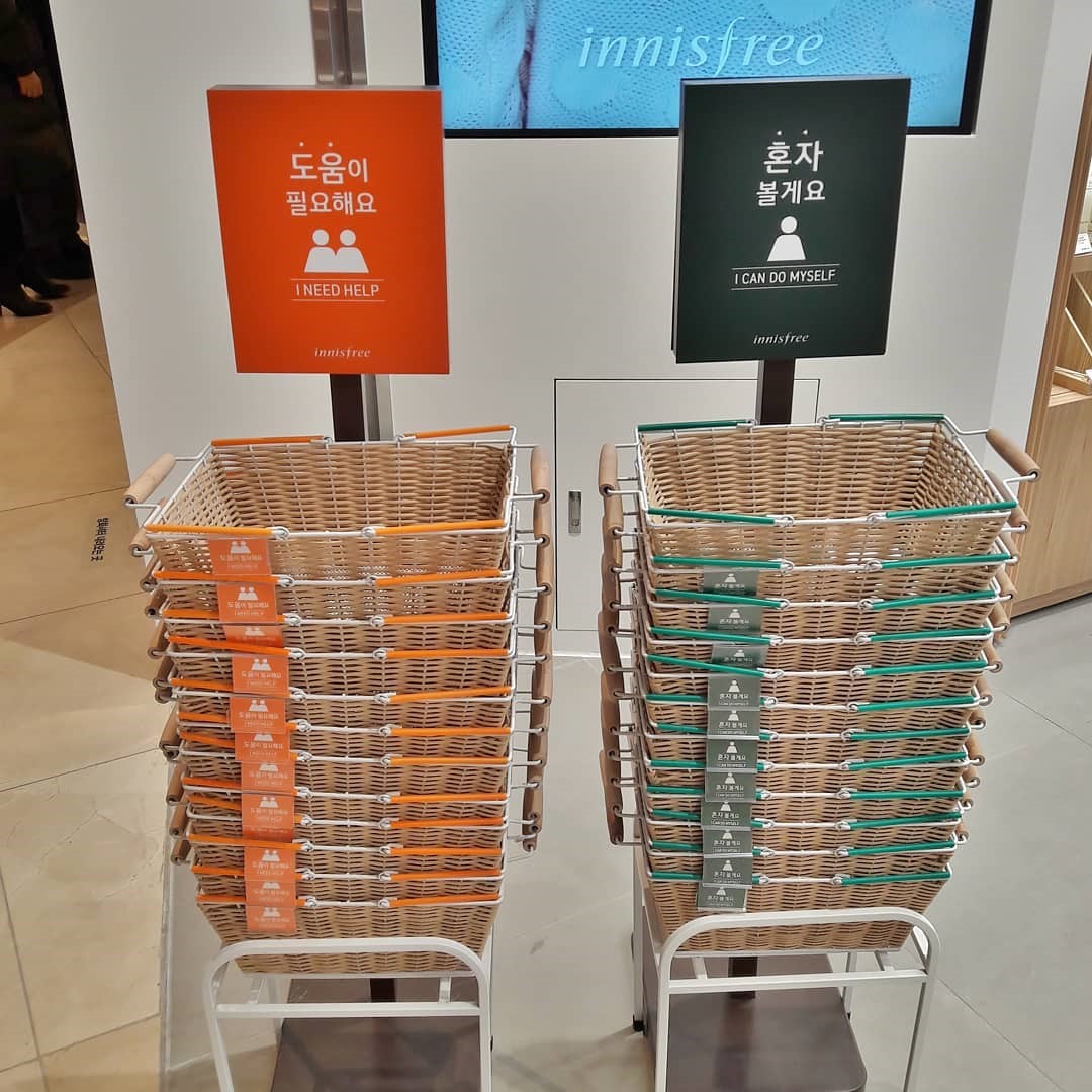 우리나라는 동방예의지국으로 친절 문화, 대우받는 문화가 일반적이었다. 그래서 매장을 찾는 소비자에게 점원이 적극적으로 다가가 제품을 소개하고 추천해주는 것이 기본적인 매장의 응대 방식이었다. 그러나 점원의 접근 자체를 부담스러워하는 소비자도 있다. SNS 등으로 인간관계의 과잉 연결에 지쳐버린 사람들이 많아지면서 친절이 오히려 부담이 되어버린 것이다. 이러한 소비자의 심리를 간파한 ‘이니스프리’는 매장에 두 가지의 바구니를 갖다 놓았다. 매장을 찾은 소비자는 ‘혼자볼게요 바구니’와 ‘도움이 필요해요 바구니’ 중 하나를 선택하여 매장에 들어가면, 점원이 소비자가 선택한 바구니를 보고 응대 방식을 결정한다. 매장을 찾은 소비자라면, 배려받고 있다는 기분이 들었을 것이다. 친절이 항상 옳은 것이 아님을 잘 간파했던 사례다.
