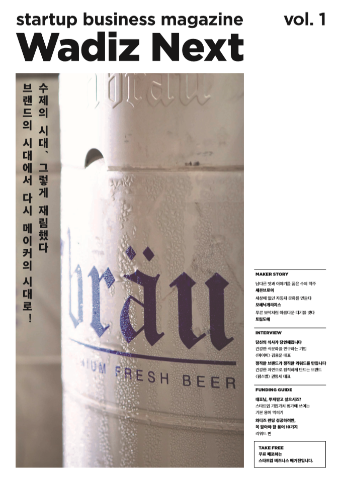 ‘와디즈 넥스트’는 No.1 라이프스타일 투자플랫폼 와디즈에서 성공적인 펀딩을 이끌었던 메이커들의 생생한 창업 스토리와 인터뷰, 예비 메이커를 위한 펀딩 가이드 등 12페이지 분량으로 구성되며, 빠르게 변화하는 라이프스타일 트렌드를 짚으면서 인사이트까지 얻을 수 있는 스타트업 비즈니스 매거진이다.