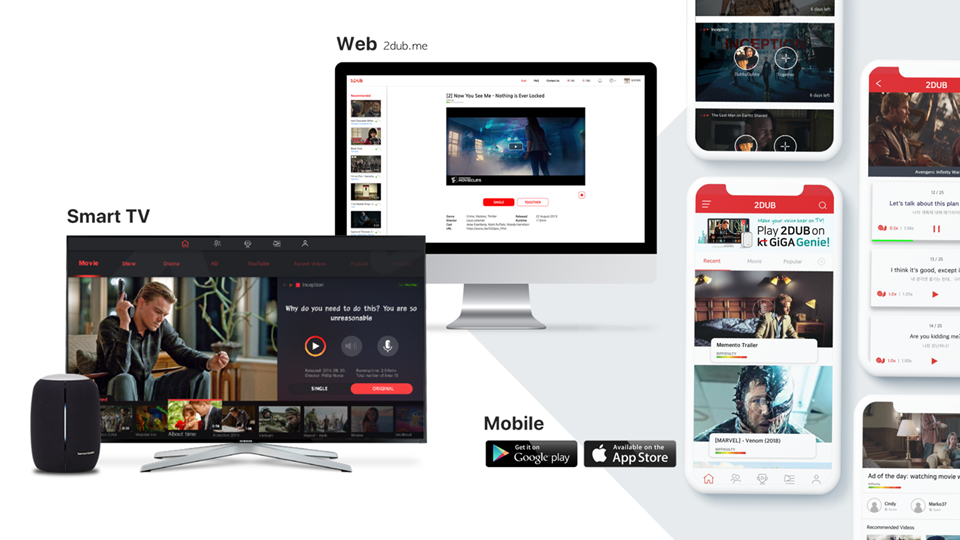 투미유는 영상더빙을 통해 상황에 따른 뉘앙스 차이를 파악하여 스피킹 실력을 향상 시킬 수 있도록 하는 투덥 서비스를 제공하고 있다. 투덥은 약 40%가 해외 사용자이며, 베트남과 미국, 그리고 필리핀에서 많이 사용하고 있다. 모바일 서비스로 시작해 KT 기가지니, 웹사이트로 확장하여 서비스를 제공하면서 사용자들로부터 좋은 반응을 얻고 있다.