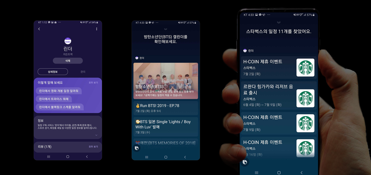 린더는 스포츠 경기, 아이돌 스케줄, 화장품 세일, 페스티벌 일정 등 관심 일정들을 받아보는 일정 구독 서비스로, 지난 11월 ‘빅스비 개발자 데이’ 파트너사 참여를 시작으로 지속적인 빅스비 캡슐 개발을 진행해왔다.