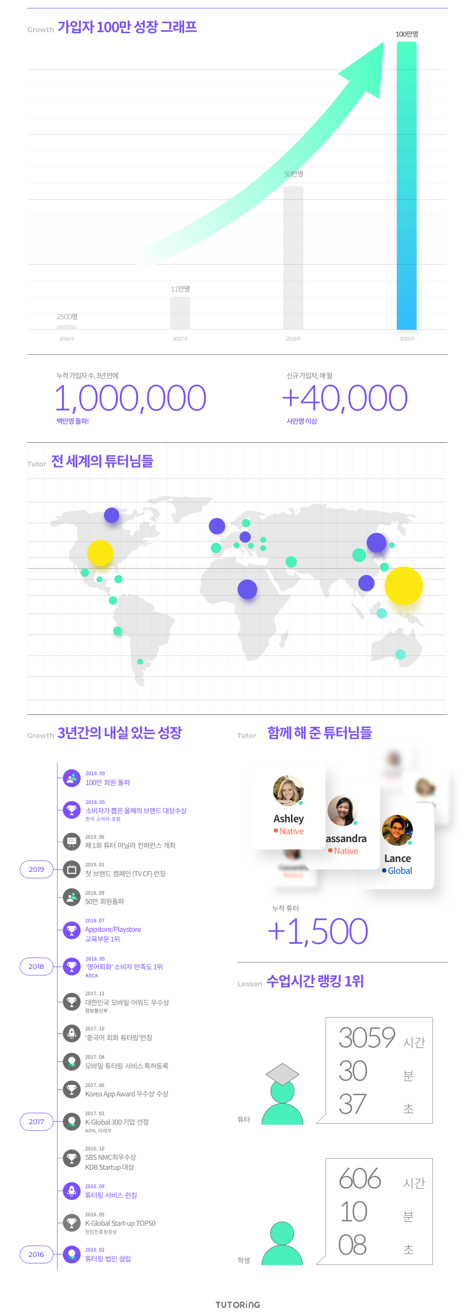 튜터링은 이러한 혁신적인 서비스로 지난 3년간 소비자와 시장에서 큰 호응을 얻으며 빠르게 성장했다. 튜터링의 신규 가입자 수는 매월 약 4만명씩 증가하며, 9월을 기준으로 누적 회원수 100만명을 돌파했다.