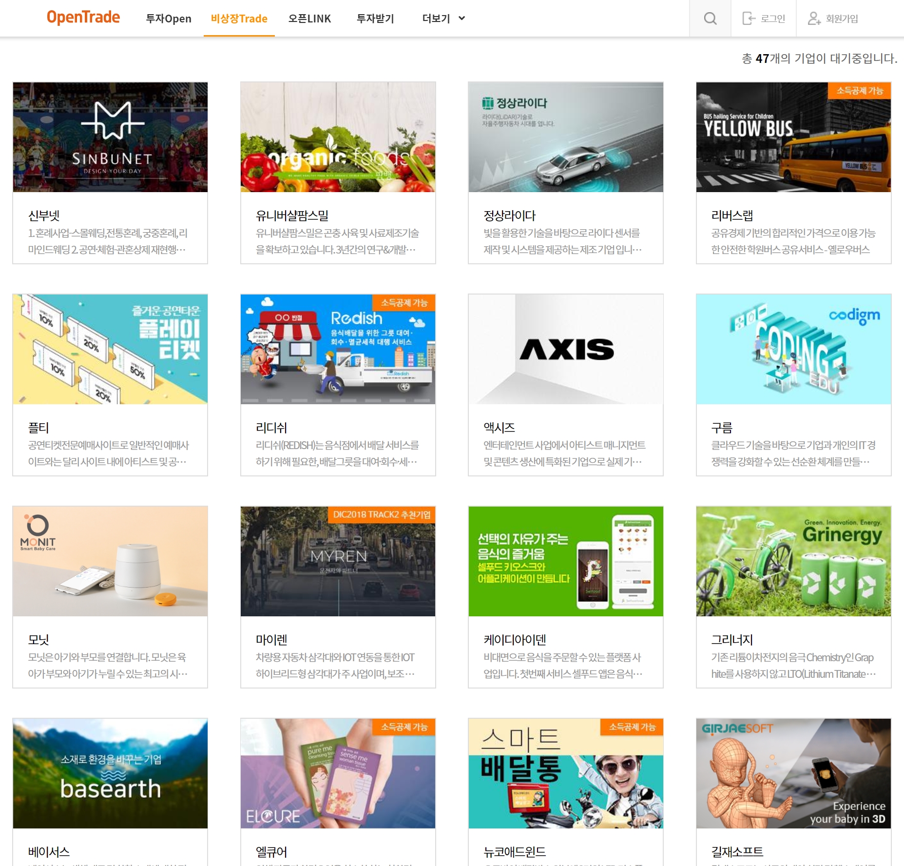 한편, 오픈트레이드는 2012년에 설립되어 2016년 1월에 자본시장법에 의거 온라인소액투자중개업 인가를 받아 현재 9700개 이상의 스타트업 정보가 등록되어 있으며, 60,000명 이상의 엔젤투자자가 플랫폼에서 활동하고 있다. 서울은 물론 크라우드펀딩을 통한 자금조달이 필요한 지역 중심으로 활발한 영업을 하고 있다.