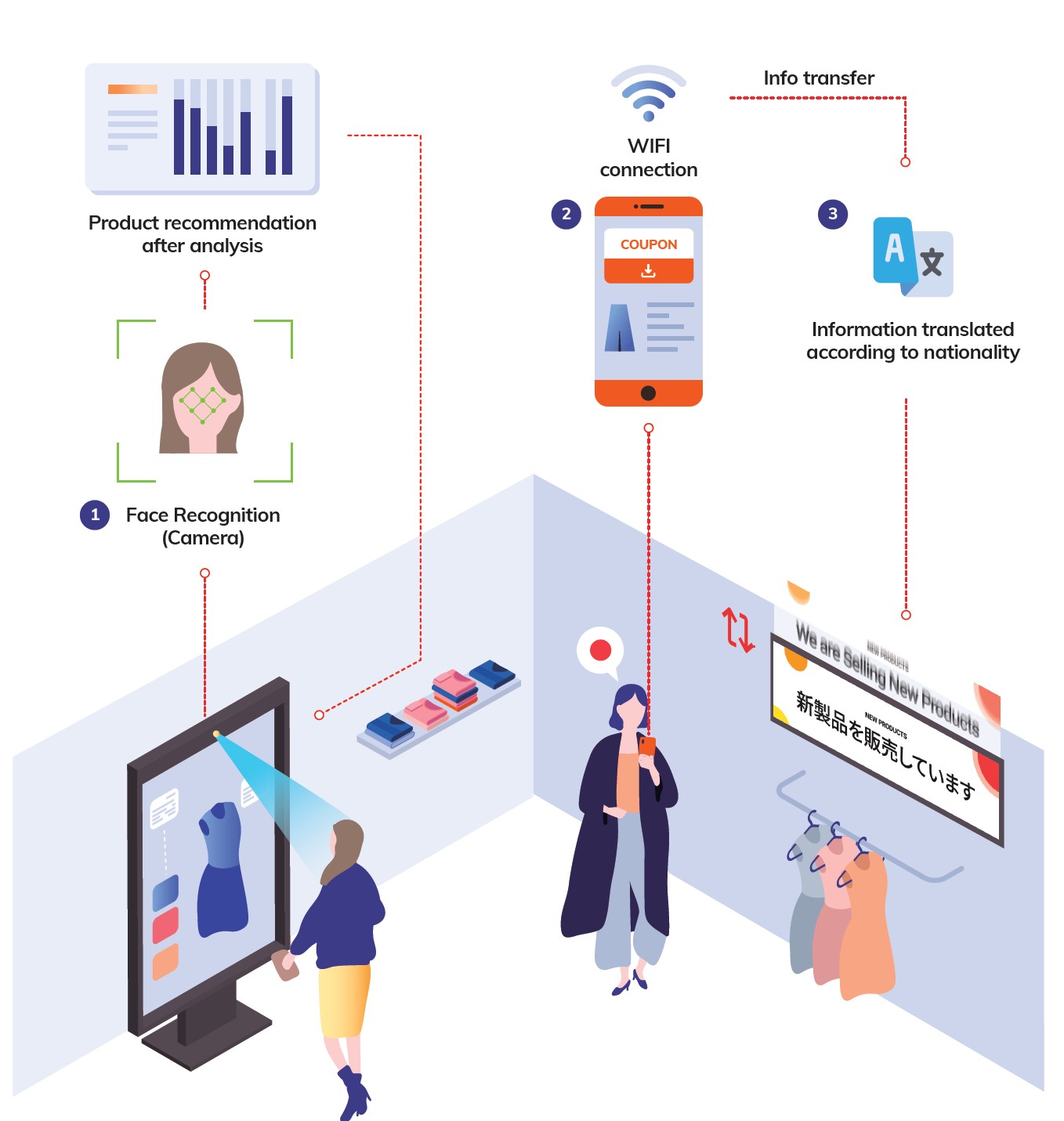 리테일 솔루션들은 고객의 성별, 연령대, 동선을 분석해 주변의 디스플레이를 통해 고객에게 제품에 대한 정보를 화면으로 보여줬다. 디스플레이의 정보를 통해 고객은 원하는 상품의 정보를 비교하고 더 쉽게 구매를 결정할 수 있게 했다. 고차원 분석 데이터가 들어간다면 더 큰 발전이 기대되는 분야이다.
