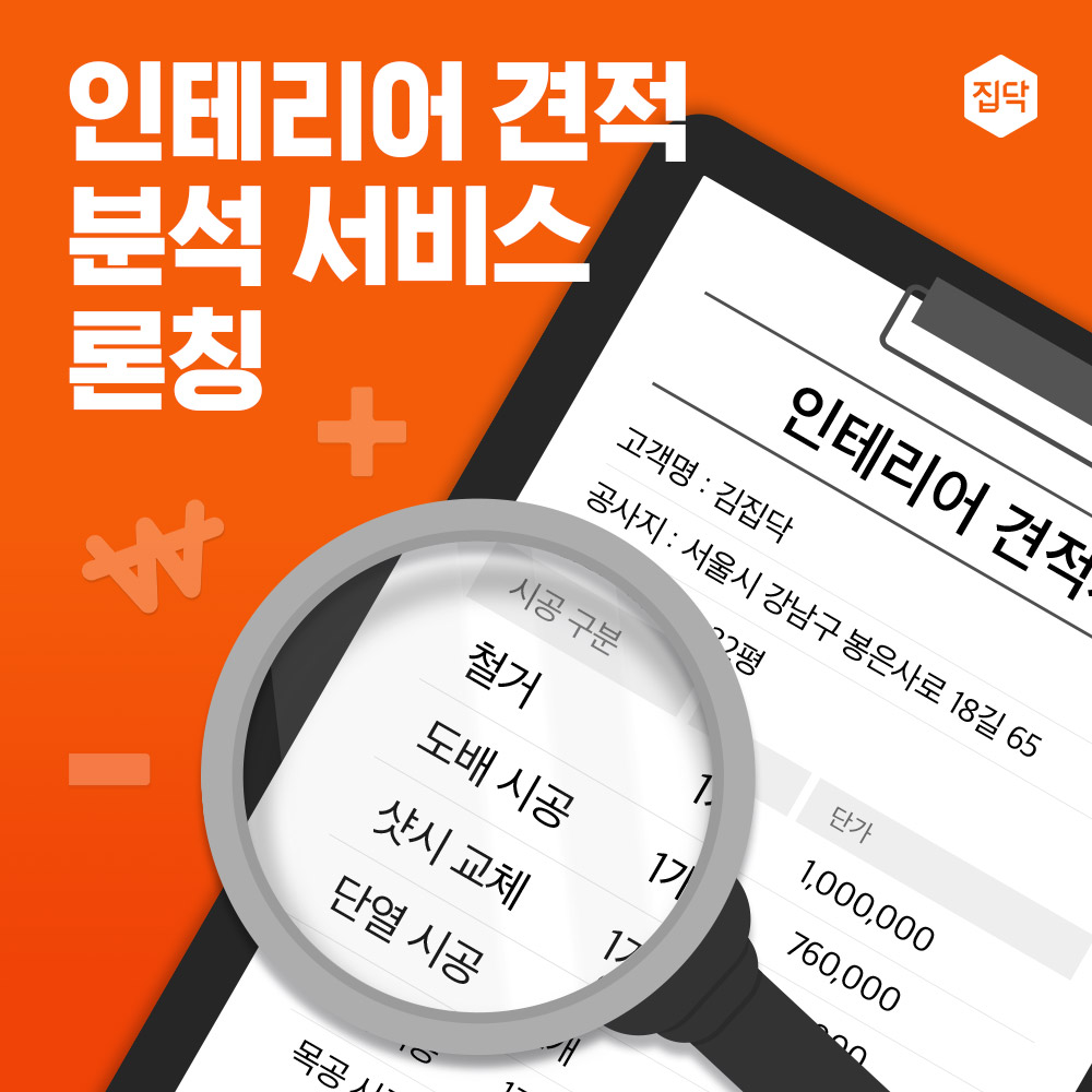 인테리어 중개 플랫폼 전문기업 집닥이 인테리어 견적 분석 서비스를 론칭한다.