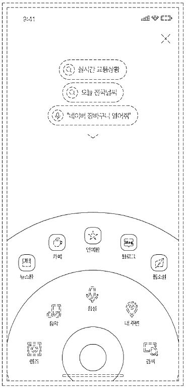 그린닷을 누르면 여러 메뉴가 원형 시계형태로 펼쳐서 한눈에 보기 쉽고 세부 항목도 바깥 원형으로 표시되어 시각적 기능적으로 좋은 배치구도이다. 쓱닷컴도 앱 첫 화면의 가운데 하단에 동그란 점을 클릭하면 네이버와 마찬가지로 두 개의 칸이 나타내며 첫 번째 칸에는 연계 사이트가, 두 번째 사이트는 세부 브랜드가 소개되었다.