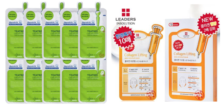 다음은 ‘엘 엔피코스메틱’의 메디힐 마스크 팩(이하 L사 디자인)과 ‘산성앨엔에스사’의 리더스 마스크팩(이하 S사 디자인) 의 디자인 분쟁 사례이다.