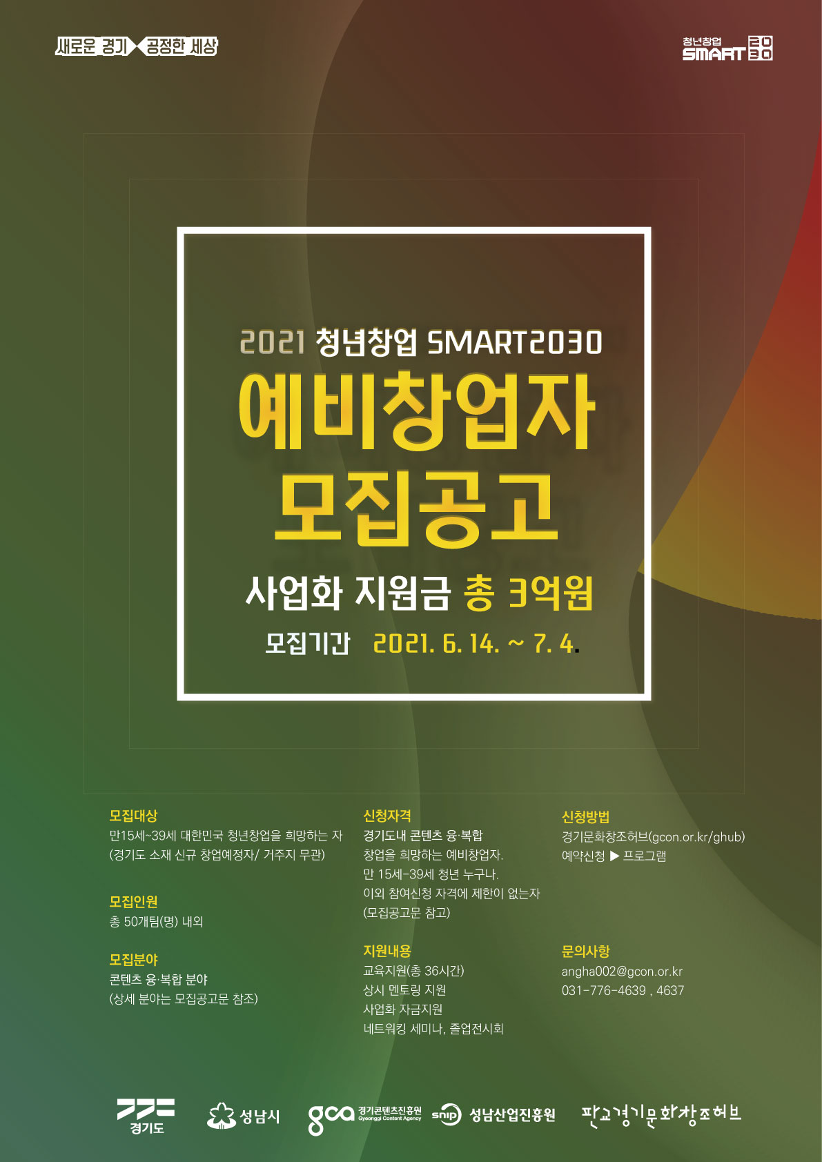 판교 경기문화창조허브를 운영하는 경기콘텐츠진흥원은 ‘청년창업 SMART2030’ 지원자를 모집한다.
