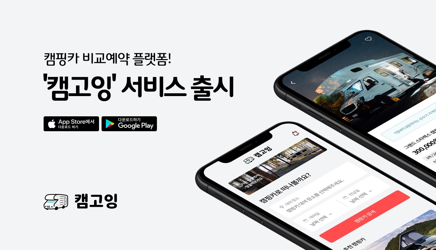 캠고잉은 기존에 캠핑카를 빌리기 위해서 렌트업체에 일일이 전화하고 확인해야 하는 번거로움을 없애고, 간단히 지역과 날짜만 검색하면 전국의 캠핑카 대여 가격을 바로 확인하고 결제까지 할 수 있는 플랫폼이다. 그뿐만 아니라 차량의 사진, 동영상, 내부 옵션 등 다양한 캠핑카 관련 정보를 제공한다.