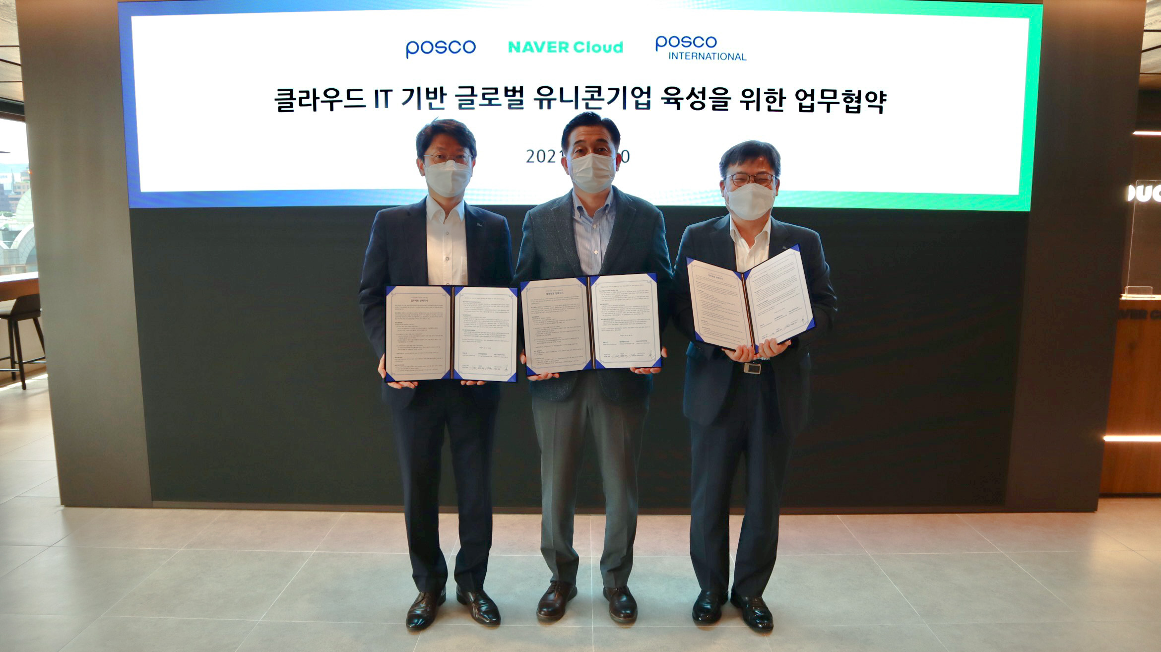 서울 역삼동에 위치한 네이버클라우드 Ncloud Space에서 진행된 협약식에는 네이버클라우드 김태창 전무, 포스코 김근환 산학연협력실 벤처밸리그룹장, 포스코인터내셔널 이유창 기업시민사무국장 등 관계자들이 참석한 가운데 진행됐다. 협약을 통해 클라우드 기반 기술지원, 산학연 협력을 통한 벤처 기업 발굴 및 육성, 해외 비즈니스 지원과 판로개척 등 각 사가 속한 인더스트리에서 두드러진 성과를 일궈낸 강점과 네트워크를 공유하고 중소 IT기업의 원활한 글로벌 진출을 위해 다각적 지원책을 제공할 예정이다.