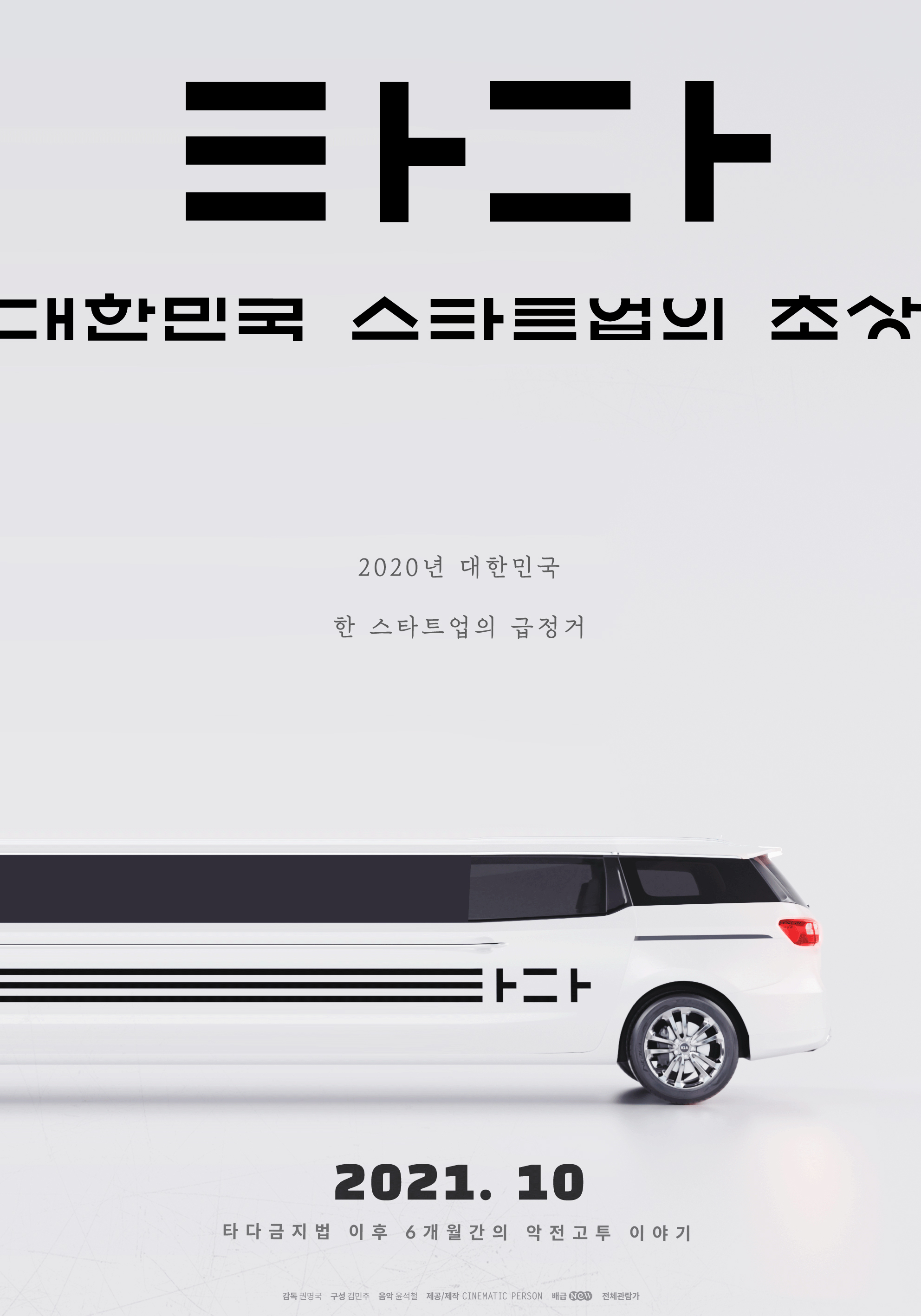 다큐멘터리를 연출한 권명국 감독은 “‘타다 금지법’이라는 최악의 위기를 맞은 한 스타트업이 그 위기를 어떻게 돌파해 나가는지, 그 악전고투의 순간에 함께 동행함으로써 스타트업이란 어떤 존재인지 집요하게 질문하고자 했다”고 밝혔다