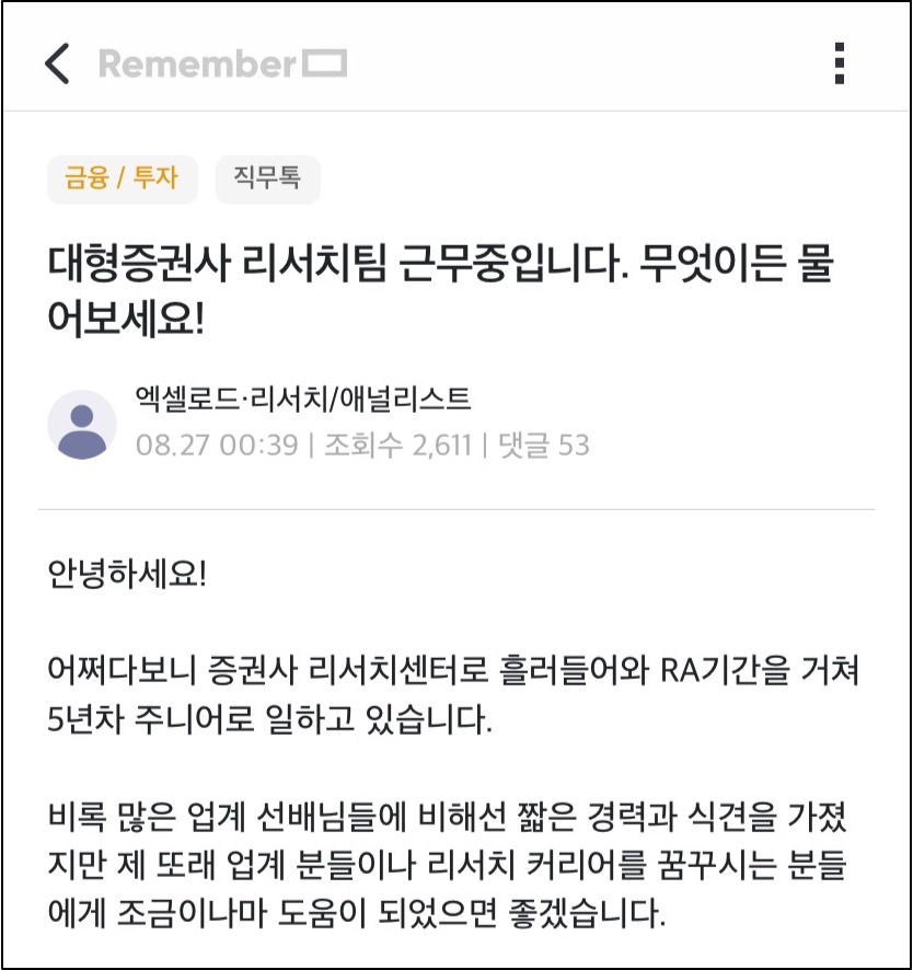 리멤버 금융/투자 커뮤니티 엑셀로드 님의 AMA 전체보기 >
