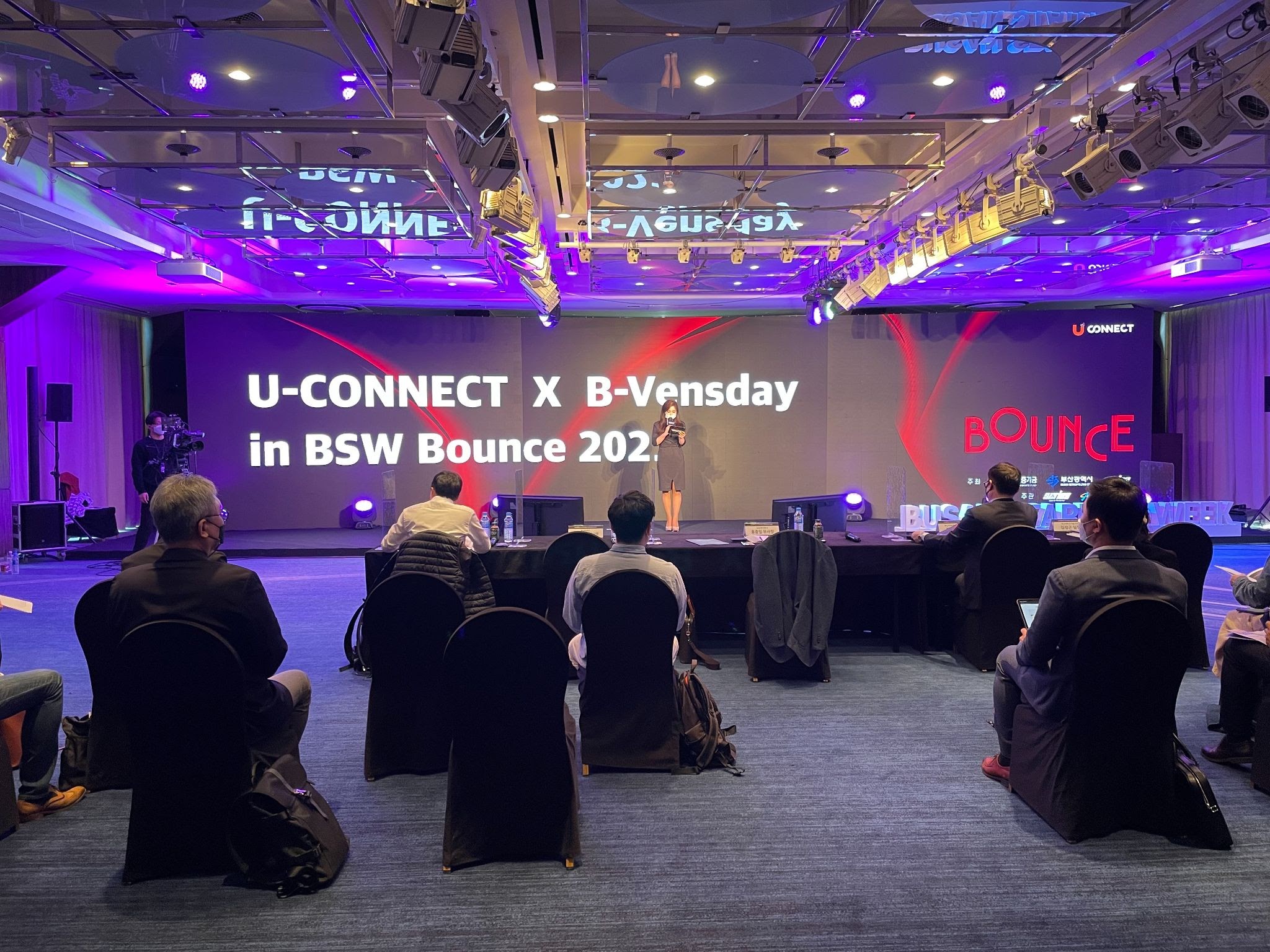 ‘유커넥트 X B-벤스데이’는 부산 스타트업 위크 ‘BSW Bounce 2021’에서 신용보증기금, 부산광역시, 시리즈벤처스가 주최하는 온오프라인 IR 데모데이이다. 부산 스타트업 위크는 창업기업 및 투자자, 액셀러레이터간의 교류와 협력의 장을 마련하고 지속 가능한 글로벌 창업 생태계 조성을 위해 매년 개최되고 있다.