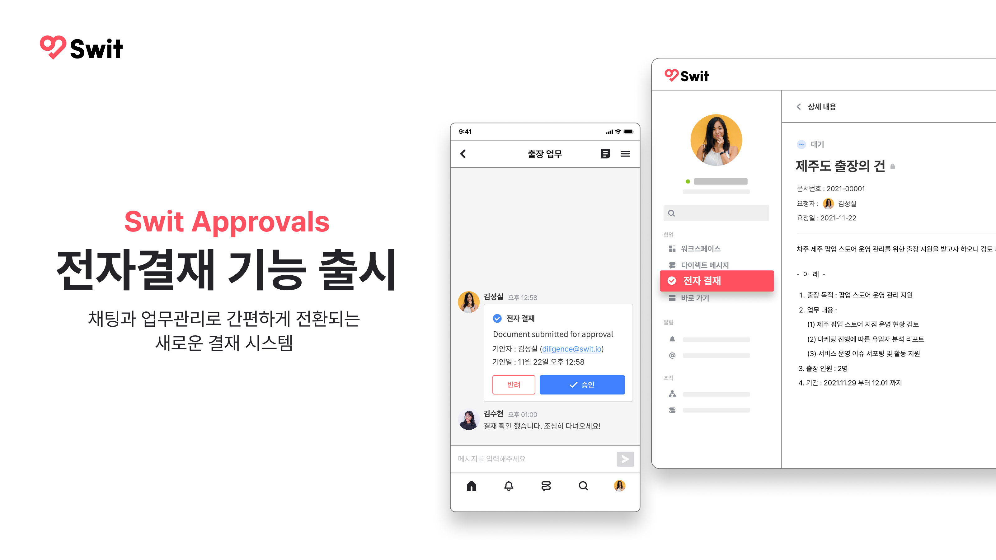 샌프란시스코에 본사를 둔 글로벌 엔터프라이즈 협업 소프트웨어 기업 스윗(Swit Technologies Inc.)이 ‘전자결재’를 기능을 출시했다.