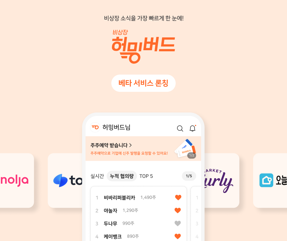 비상장 허밍버드는 비상장 투자자가 투자를 결정할 때 핵심적으로 참고하는 투자 유치 이력, 서비스 성장세, IPO 추진 현황, 재무제표, 주주 구성, 임원 약력, 언론사 뉴스, 공시 등을 제공한다.
