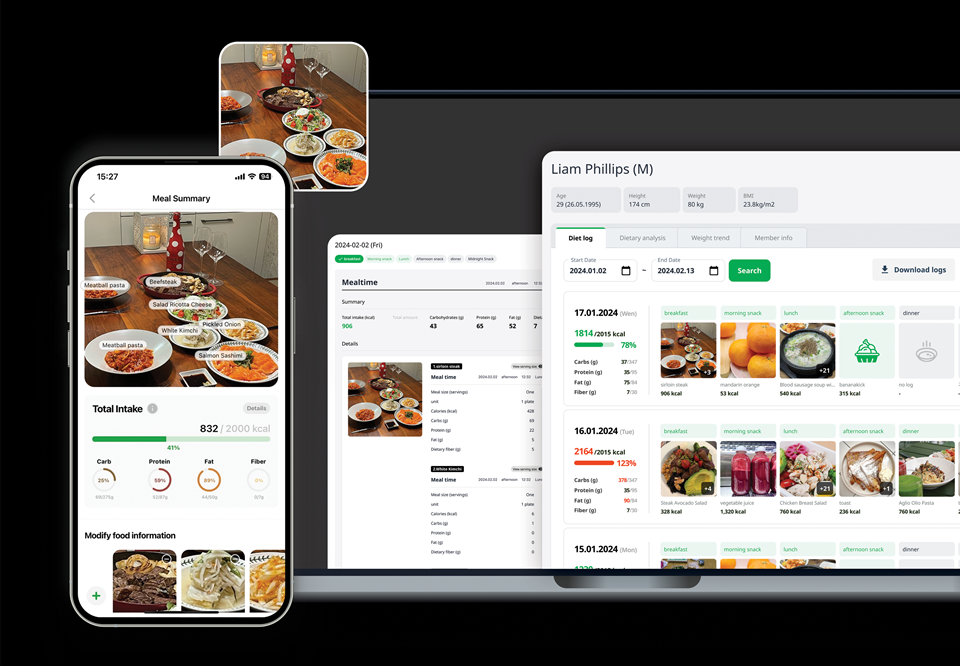 이와 함께 두잉랩은 원천 기술을 활용한 식단 모니터링 솔루션(Diet Monitoring Solution)을 고도화하고 있다. 환자가 찍은 음식 사진을 분석하고 디지털화하여 관리자가 환자의 식이 데이터를 차트 형식으로 볼 수 있다. 이를 통해 환자와 관리자 사이 정확한 정보 교환을 가능하게 하고 영양 상담 편의성을 높여줄 수 있다.
