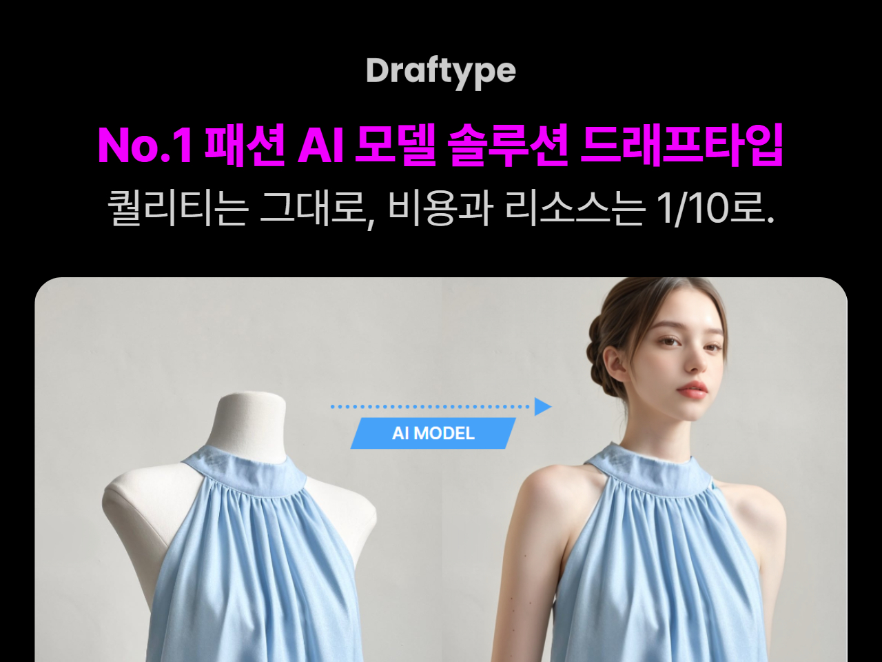 서비스 론칭 5개월 만에 1천여 개의 이용 기업을 확보한 패션 AI 벤처기업 ‘드래프타입’이 ‘기업용 AI 모델 생성 솔루션’을 출시한다. 드래프타입은 패션 쇼핑몰/브랜드들에게 패션 모델 AI 스튜디오 서비스를 제공하는 AI 벤처기업이다.