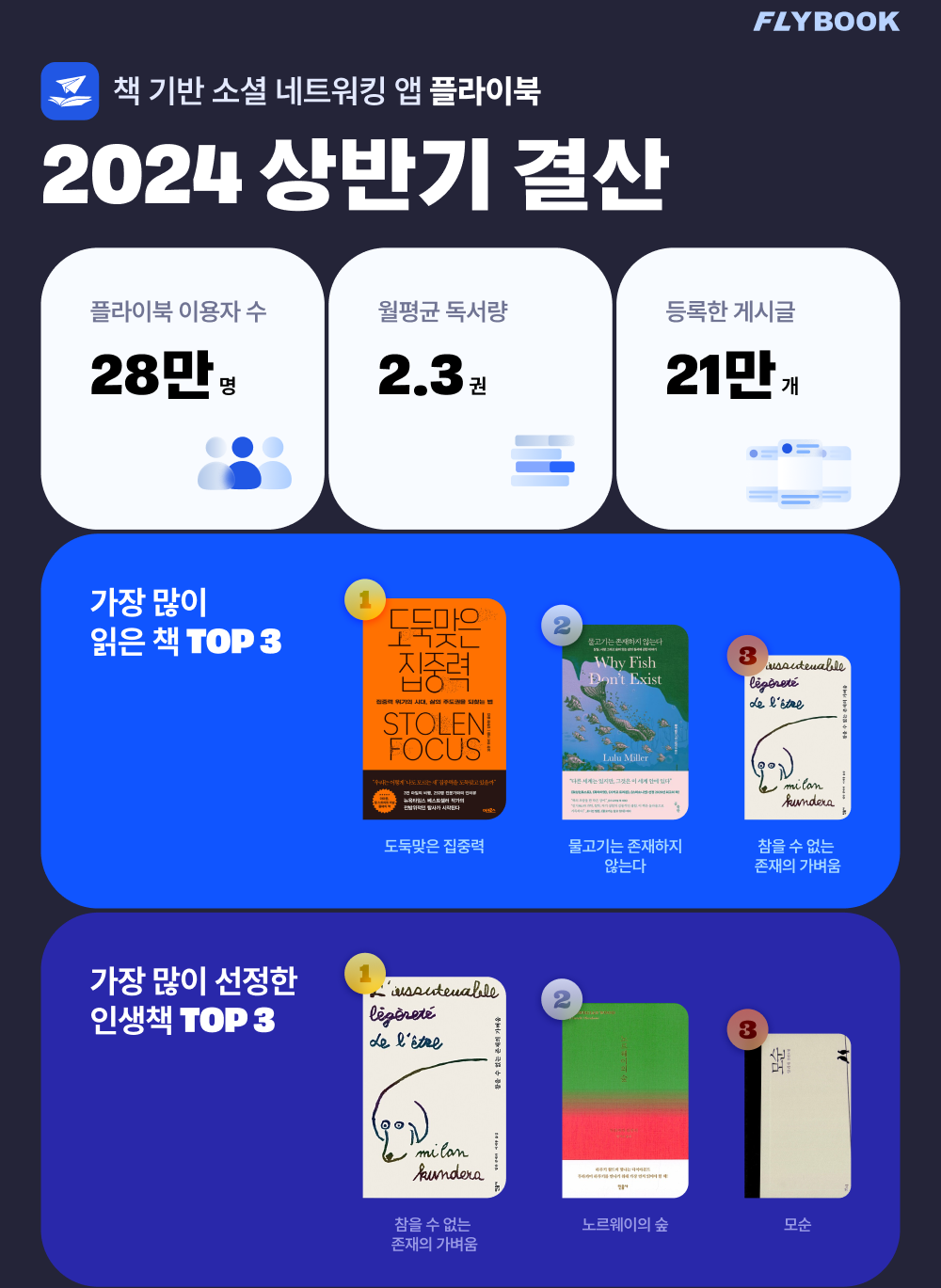 책 기반 소셜 네트워킹 앱 ‘플라이북’이 2024년 상반기 결산 레포트를 발표했다.