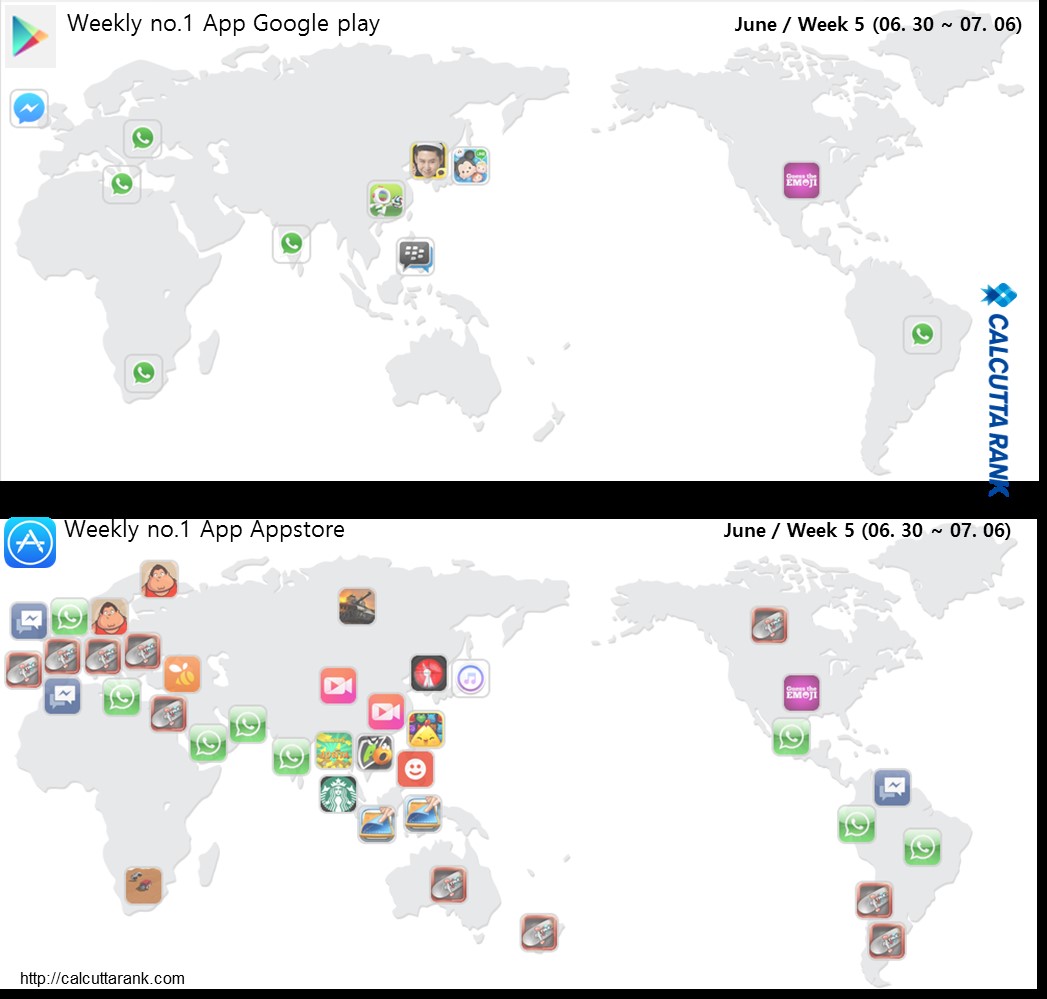 이번 주 최고의 글로벌 인기앱은 다시 “왓츠앱” 메신저가 정상을 차지하고, “Fit the fat”라는 코믹한 다이어트 운동테마의 “True Skate”라는 게임앱으로 FIFA의 인기를심플게임이 2위를 차지했습니다. 다이어트는 게임에도 재미있는 소재로 활용되어 간단한 앱이지만 많은 사용자들에게 인기가 있습니다.
