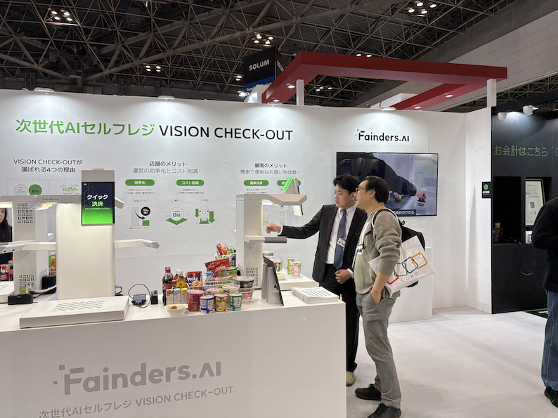 파인더스에이아이가 도쿄 빅사이트에서 개최된 ‘리테일 테크 재팬 2025’에 참가해 비전 AI 기반 무인 매장과 AI 자동 계산대(Vision Check-Out, VCO)를 시연했다.