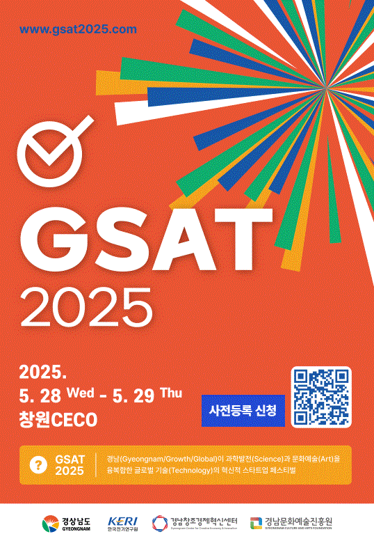 올해로 2회째를 맞는 글로벌 융복합 창업 페스티벌 GSAT 2025가 오는 5월 28일부터 29일까지 양일간 창원컨벤션센터에서 개최된다.