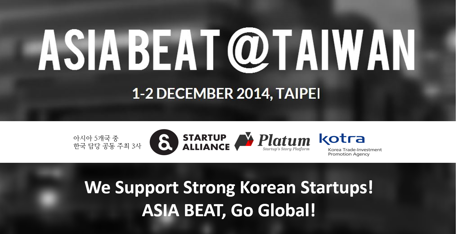 오는 12월 1~2일 대만 타이베이에서 아시아 주요 5개국의 우수 스타트업과 투자자를 대상으로 비공개로 진행되는 아시아 스타트업 행사 ‘아시아 비트(Asia Beat, 행사 안내 국문 자료)‘가 개최된다.