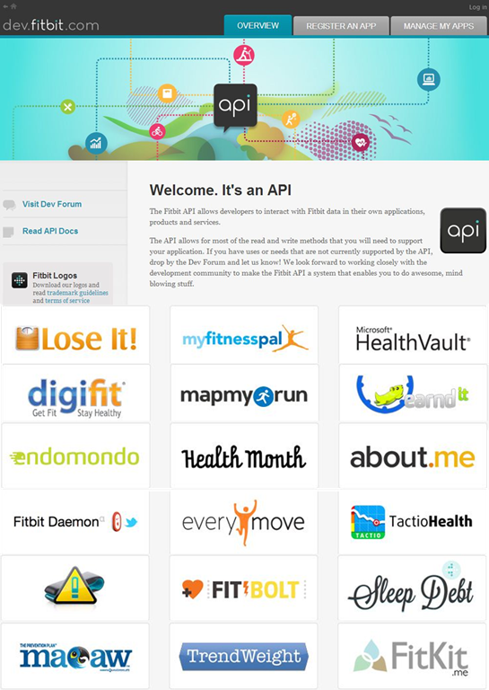 한 가지 더 주목해 봐야 할 점이 있다. 라이프를 트랙킹하는 서비스는 크게 ‘스마트 가젯’ + 어플리케이션 결합 형태로 제공하는 서비스와 ‘스마트폰 자체 기능(GPS, 마이크, 센서 등등)’ + 어플리케이션으로 제공하는 서비스로 크게 나뉜다. 그런데 이러한 서비스를 제공하는 중 소규모의 회사들이 무한 경쟁을 하면서 이제는 각각 서비스 마다 나뉘어진 사람들의 헬스 데이터를 서로 공유하여 몸집을 키우는 거대 공동체 조직들이 만들어 지고 있다. 스마트 가젯을 만드는 회사들과 어플리케이션 서비스를 하는 회사 모두 서로의 API 를 공개하여 개발자들이 자신의 입맛에 맞는 새로운 서비스를 만들도록 유도하면서, 플래폼이 되려는 보이지 않는 전쟁을 하고 있는 것이다. 개발능력과 아이디어만 있으면 얼마든지 매쉬업하여 새로운 서비스를 만들어 볼 수 있게 되었다.