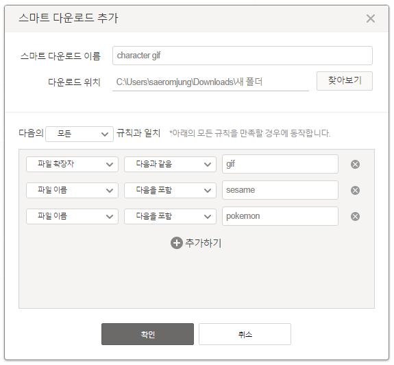 웨일이 제공하는 여러 가지 커스터마이징 기능 중 유용하다 생각되는 것이 ‘스마트 다운로드’다. 특정 확장자명, 단어를 포함한 파일의 다운로드 위치를 미리 지정할 수 있는 기능이다. 이에 따라 번거로운 폴더 분류 작업을 단축할 수 있다.