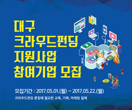 대구시와 경북대학교 크리에이티브팩토리는 지역 유망 (예비)창업자, 기술창업기업이 개발한 혁신 제품에 대한 신속한 자금조달, 홍보, 성공적인 시장진입을 촉진하기 위해 ‘대구 크라우드펀딩 지원사업’ 참여기업을 오는 22일까지 모집한다고 밝혔다.