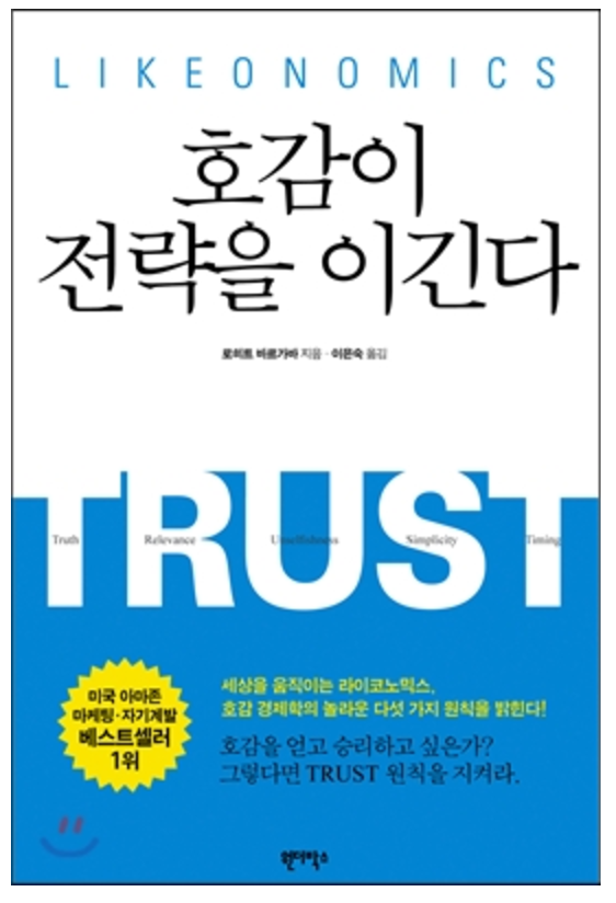이 책은 경제를 이해하는 데 호감도가 왜 그토록 중요한지 설명하고, 사람들이 왜 어떤 조직이나 사람들은 신뢰하고, 또 다른 조직이나 사람들은 신뢰하지 않는지를 살펴보고, 신뢰를 얻을 수 있는 실용적인 방안을 제시한다. 아울러 호감을 얻을 수 있는 다섯 가지 키워드 진실성(Truth), 관련성(Relevance), 이타성(Unselfishness), 단순성(Simplicity), 타이밍(Timing) 등 ‘TRUST 원칙’을 구체적으로 설명한다.