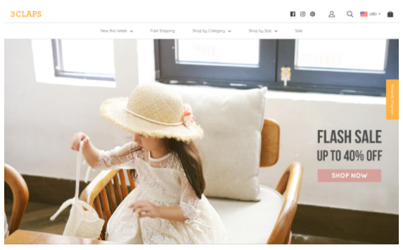 쓰리클랩스는 국내의 풍부한 아동복 인프라를 이용하여 전세계 아동복 시장 1위인 미국시장을 타겟으로 2015년 4월 오픈했다. 엑셀레이터 프라이머, 사제파트너스, 디캠프, 스트롱벤처스 등이 쓰리클랩스에 투자했다. 2016년에는 미국시장을 넘어 홍콩시장에도 진출하였고, 페이스북 공식 성공 사례로 등재되는 등 빠르게 성장해왔다.