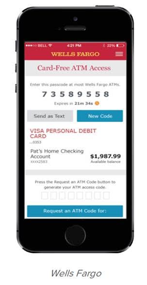 웰스 파고(Wells Fargo)는 모바일 앱을 통해 ATM을 포함한 전체 은행 망에서 카드 없이 현금을 인출할 수 있는 서비스를 미국 은행 최초로 선보였다. 앱에서 생성한 보안 비밀번호를 이용해 현금을 인출하는 방식이다. 비밀번호조차 필요 없는 거래를 만드는 추가 개선 작업도 진행 중이다.
