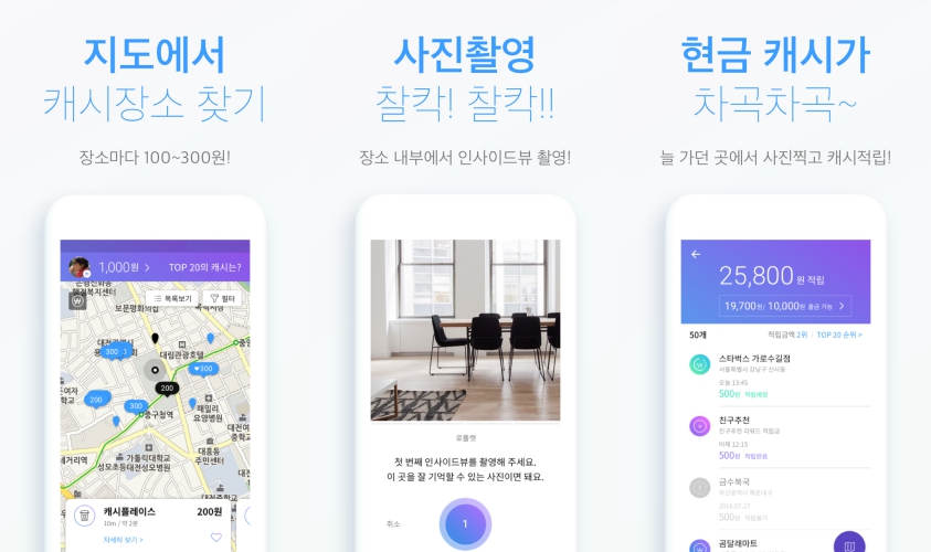 캐시플레이스는 카페나 편의점, 음식점 등을 방문한 고객이 매장 내부 사진을 찍으면 100원에서 300원까지 현금 리워드를 지급한다. 기존의 리워드앱들이 잠금화면 해제, 동영상 시청, 앱 설치 등 광고 노출에 대한 대가로 유저들에게 리워드를 지급 했다면 캐시플레이스는 광고 노출 없이 일반 사용자들이 실내 위치 데이터 플랫폼 구축에 리워드앱을 통해서 참여할 수 있도록 하였다.