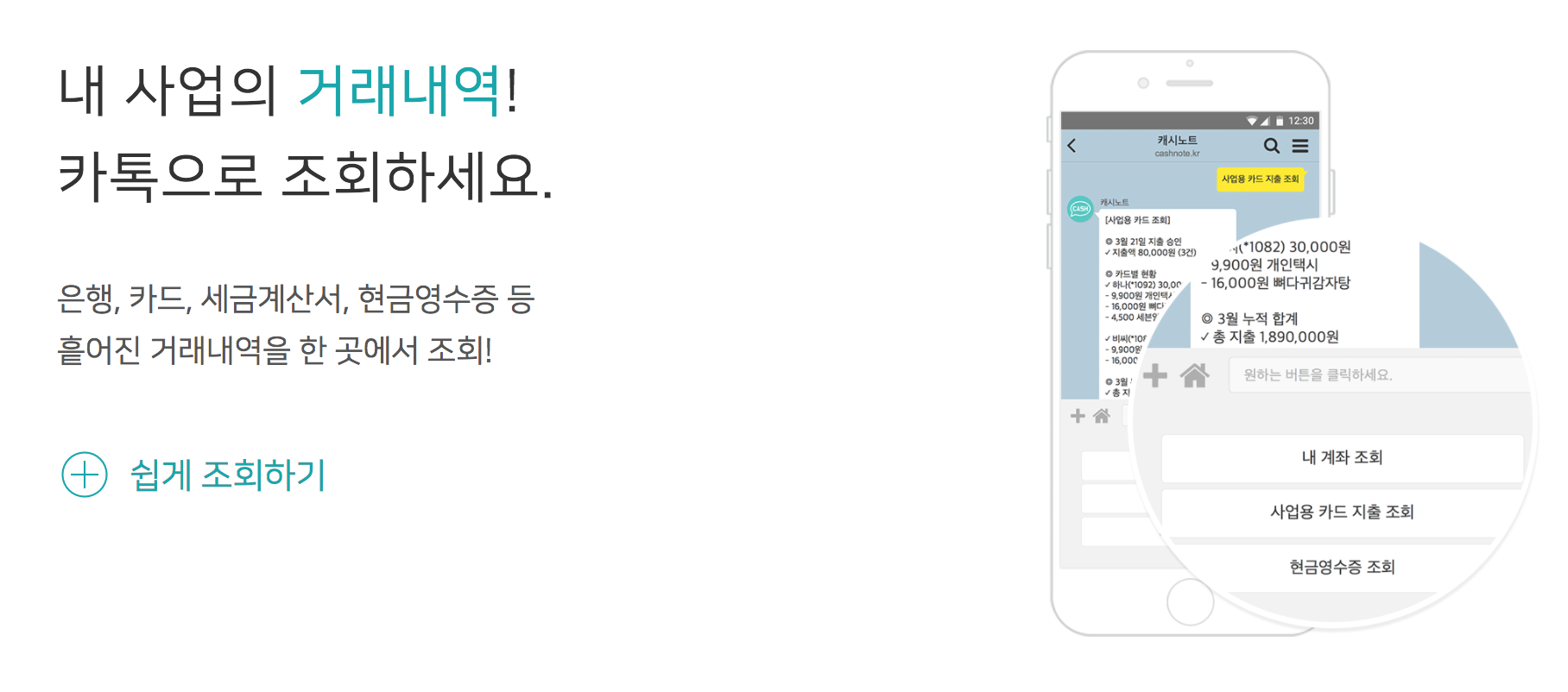 우리가 제공하는 서비스(캐시노트)에는 여러 기능이 있다. 그 중 첫 번째가 매출과 관련된 여러 정보를 간결한 형태로 조회하고 관리할 수 있게 돕는 기능이다. 그다음으로는 현금 영수증, 세금 계산서 정보를 다루는 거래 정보 관리 기능이 있다. 기존 사업자들은 최소 4~5개의 앱을 깔아 이 금융 정보를 관리했다. 캐시노트의 경우 한 번만 서버에 신상 등록을 하면 별도의 앱을 설치할 필요 없이 카카오톡을 통해 모든 정보를 조회할 수 있다. 많은 사람이 소비자 데이터를 다루다가 왜 갑자기 핀테크 창업을 했느냐고 묻는다. 내겐 두 업이 다르지 않다. 아이디인큐에서는 소비자 데이터를, 한국신용평가에서는 금융 데이터를 다루고 있다. 10년간 꾸준히 데이터 비즈니스를 하고 있는 셈이다.