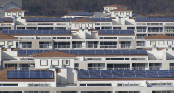 지붕의 검은색 부분이 태양패널이다. 패널의 색과 셀 타입(cell type)은 소비자가 선택할 수 있다.